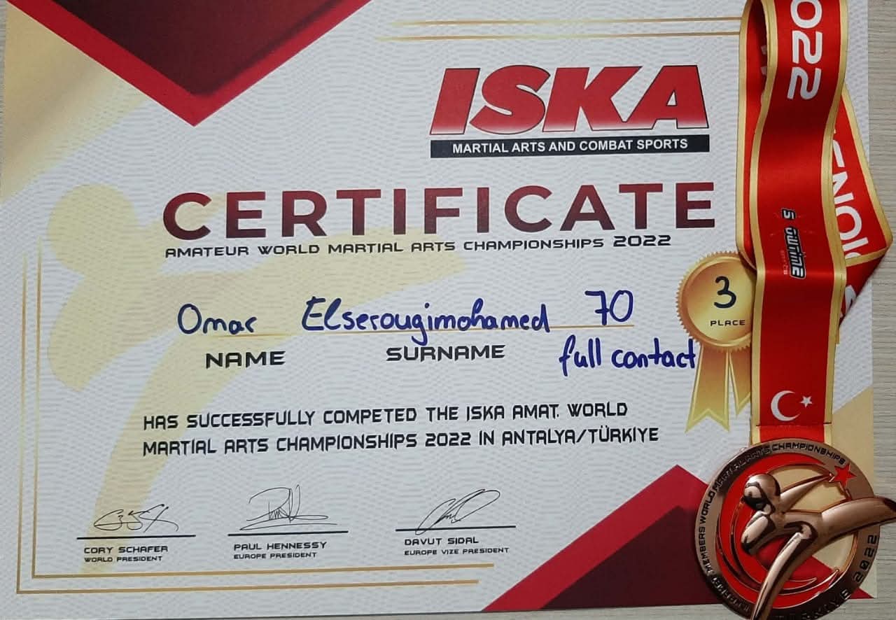 Omar El-Sarougy won third place in the world in kickboxing (Full Contact 70 kg)